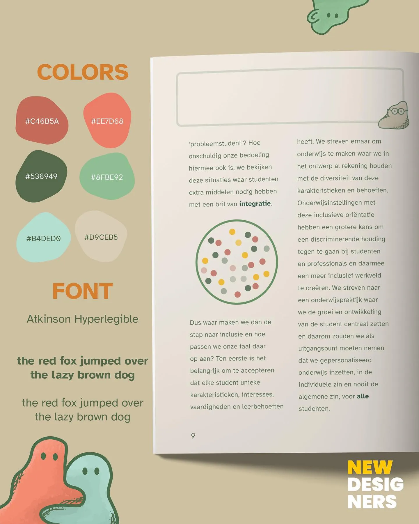 While working at the designer agency New Designers, I had the opportunity to collaborate on a meaningful project for a client. A university teacher who aimed to improve inclusivity among educators. Together with a colleague, we embarked on a 3-month journey to create three themed booklets: Inclusive Teaching, Inclusive Language Use, and Inclusive Coordination & Development.